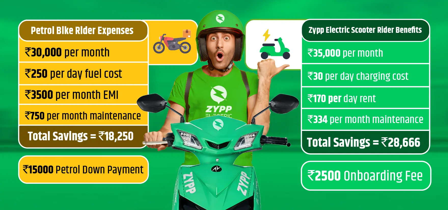 ICE vehicles are costly and come with rising fuel prices, high maintenance, and EMI stress that can cut deep into delivery partners daily income. In comparison, Zypp Electric e-scooters on rent are built for delivery partners who want to earn more and spend less.